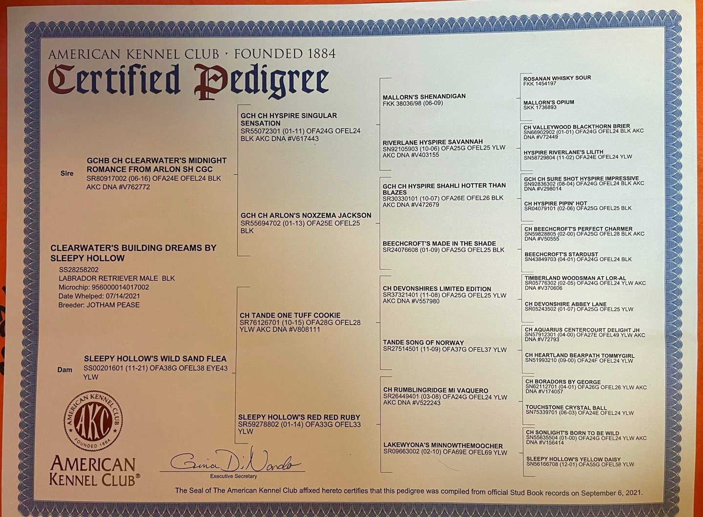 Lego is clear on the Labrador genetic panel with good hips and normal elbows. He is also advanced in cardiac and eyes.